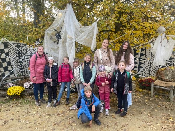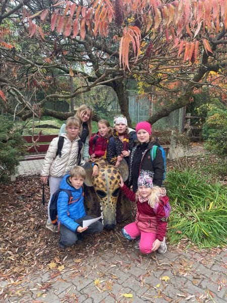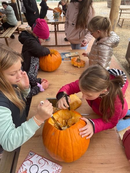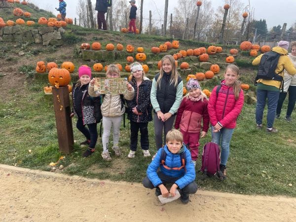O podzimních prázdninách jsme vyrazili do strašidelně vyzdobené ZOO ve Dvoře Králové nad Labem. Těšili jsme se na dlabání dýní, navštívili Muzeum koster, svezli se na šlapadlech, vyplňovali pracovní list a pozorovali všechna zvířata. Také jsme viděli, jak krmí orangutana dýní. Moc se nám to líbilo.